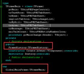 然后给TFrameMain类添加TFrameHistroy类型的公共成员: